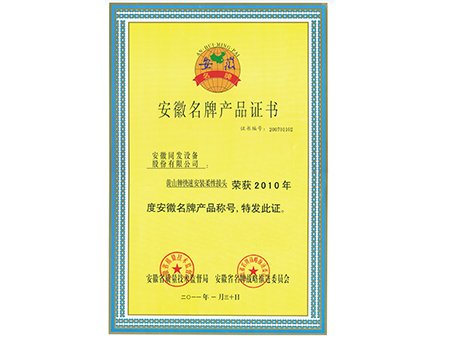 安徽名牌產品證書